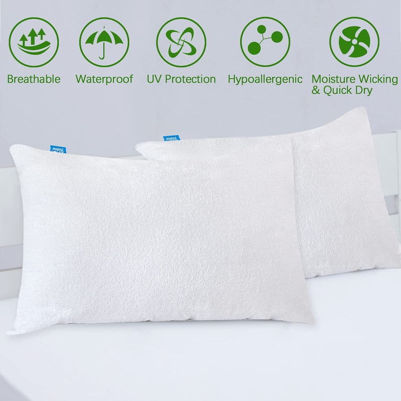 • BOTH A PILLOW PROTECTOR & PILLOWCASE: Just put your pillows directly stuffed into the pillowcases for sleep, when the head rest on it, it’s incredibly cozy, no need for any other pillow case or pillow protector due to the breathable and soft bamboo terry surface. Besides, the pillow case is fully enclosed that is totally waterproof and dirt-resistant, and easy to wash, too. It will maximize the convenience of your life.