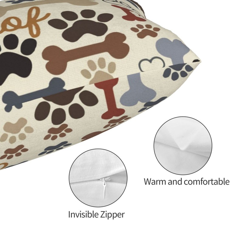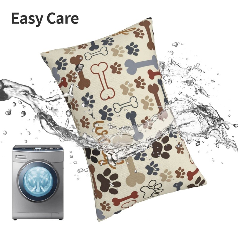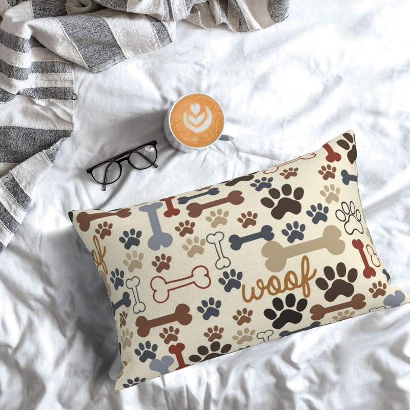Pillowcase for Hair and Skin Dog Paw Prints Bones Super Soft Travel Pillow Case with Hidden Zipper Closure for Bed Cushion Cover for Sofa Bed Car Chair (14x20 in),Gifts for Women Men