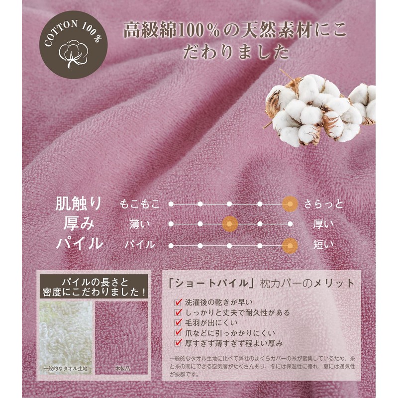 - Made with 100% Premium Cotton: Only the finest cotton is used, gentle on your skin during sleep.Compared to regular towel fabric, the threads in our pillowcase are tightly woven, creating plenty of air pockets between them. This enhances warmth during the winter and offers excellent breathability in the summer.The short pile prevents hair from getting tangled, ensuring a smooth, stress-free experience.The fabric is sturdy and durable, with no shedding, ensuring long-lasting quality.