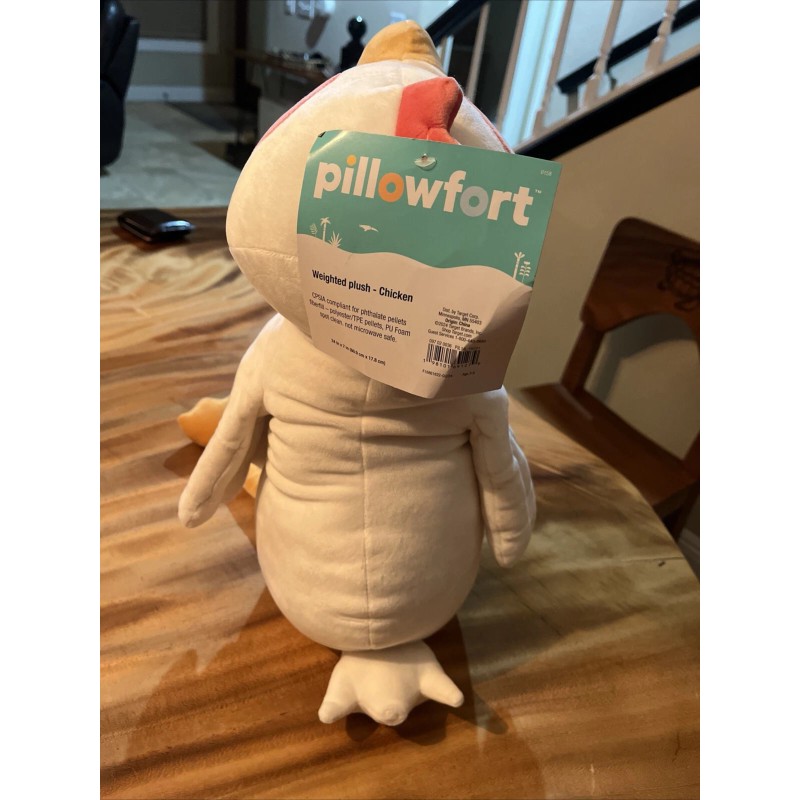 The Pillowfort Chicken is a weighted plush throw pillow in white color, weighing 3 lbs. It functions as both a stuffed animal and a decorative pillow, adding a fun and cozy touch to any room. This product is from the Pillowfort brand and comes with free shipping.