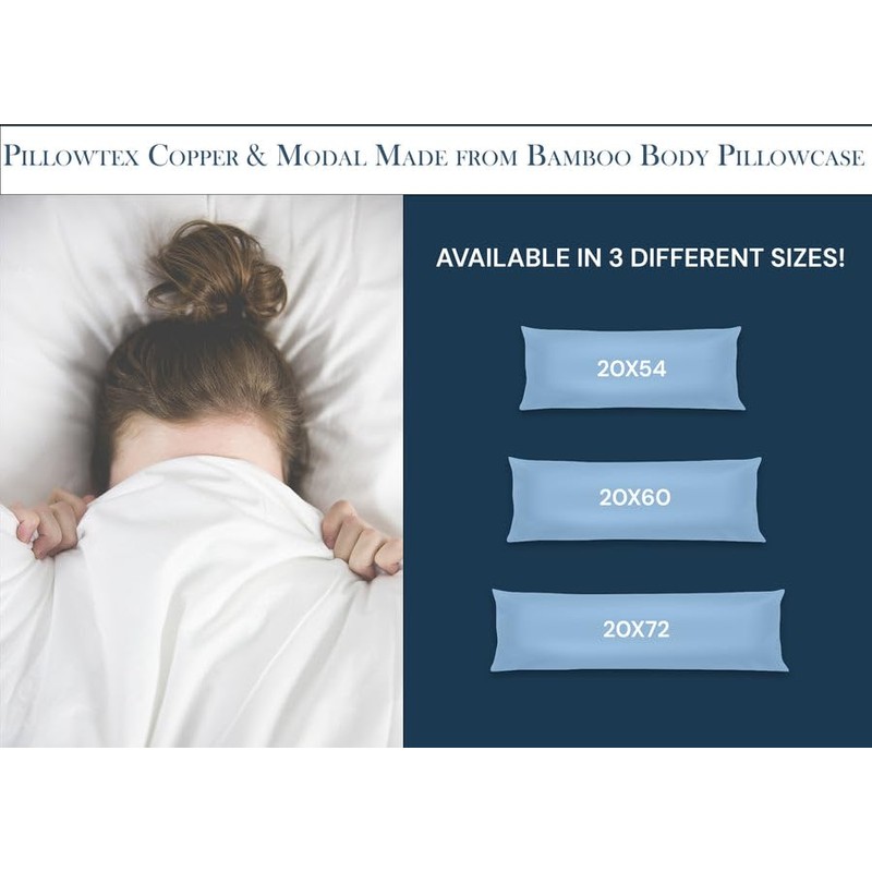 Pillowtex Copper Ion Infused Rayon Derived from Bamboo Cooling Body Pillow Cover (White, 20x72)