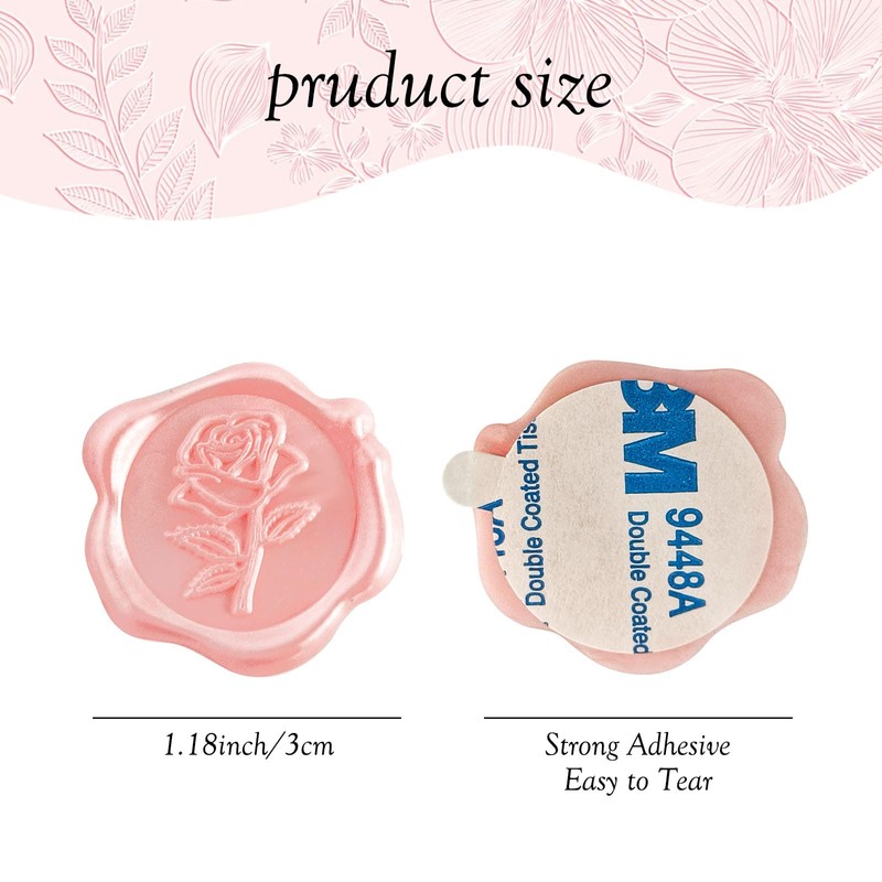 - Package Contene: You will get 50pcs pink rose style wax seal stickers made by pure hand, the rose wax seal sticker is 1.18 inches/30 mm in diameter, each rose wax seal stickers has almost the same size of adhesive on the back of the sticker, perfect for mailing, you don't need to worry about the strength of the adhesive at all