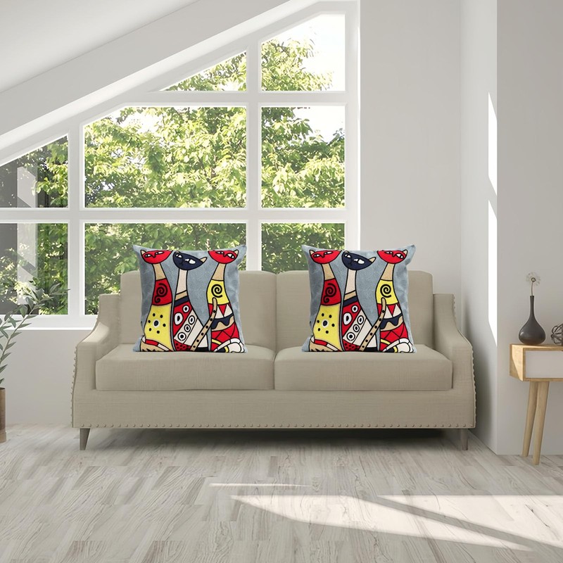 Pilmandu Pack of 2 Decorative Square Pillowcase Abstract Art Embroidered Throw Pillows Cover for Couch Farmhouse Patio Garden Sofa Chairs 18x18 Inch (Cut Long Neck Cat)