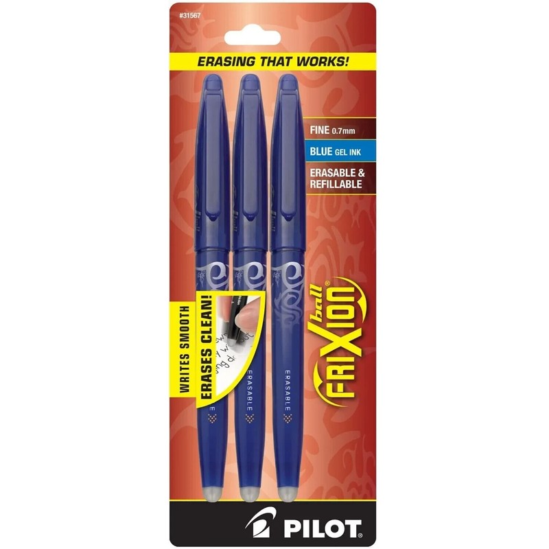 Pilot 31567 FriXion Ball Erasable Gel Pens, Fine Point, 3-Pack, Blue