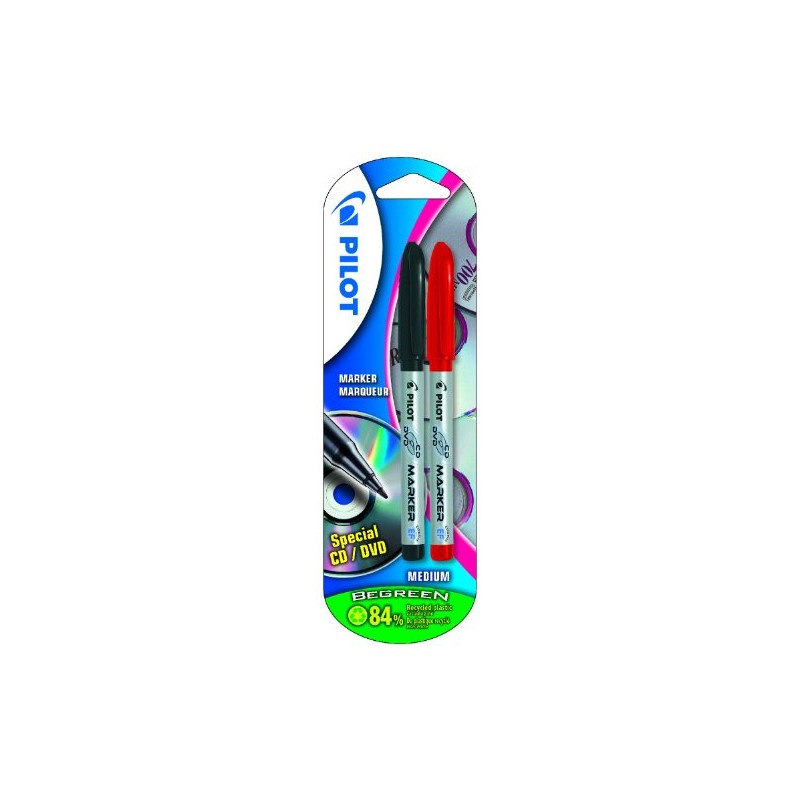 Pilot 4052B2 CD Marker Pens (Pack of 2) Black and Red