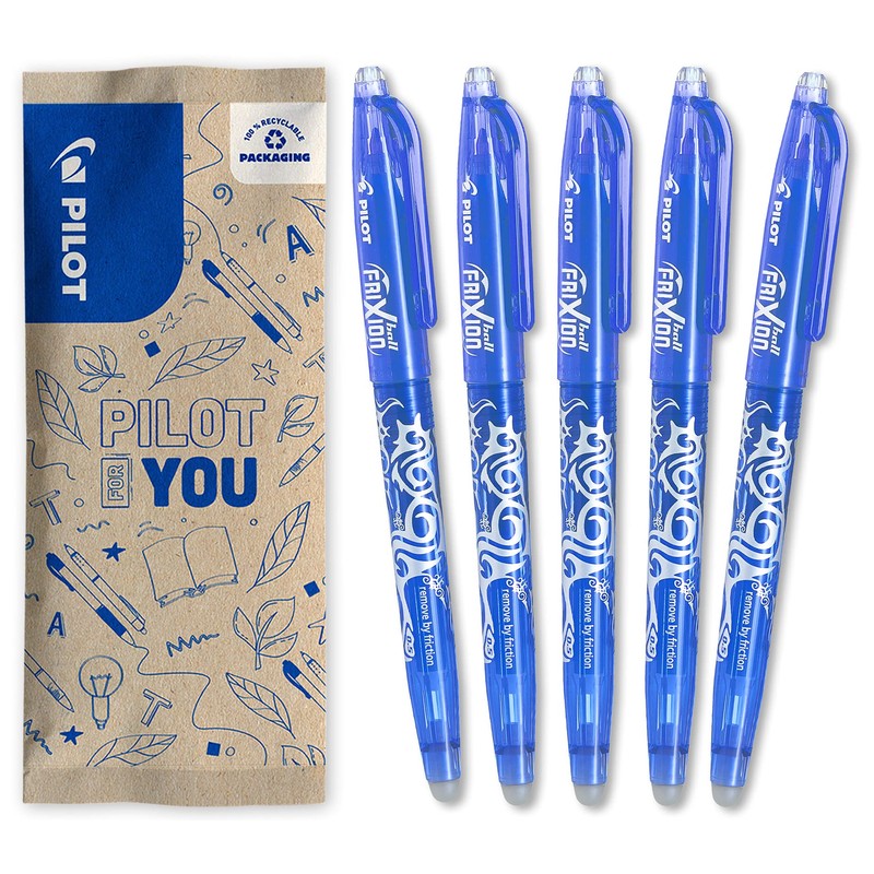 Pilot - 5 Frixion Ball - Erasable Gel Ink - Refillable and Ergonomic - Blue - Fine Tip