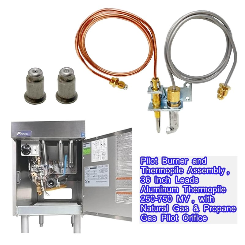 Pilot Burner & Thermopile Assembly 36" Aluminum Thermopile Cables 250-750MV with Natural Gas and Propane Gas Pilot Orifice for NG/LPG Oven Controls Replacement Parts