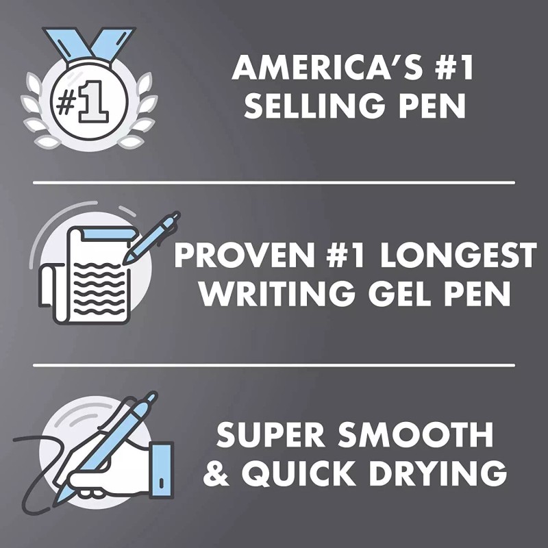 - Smooth & Long-lasting: Enjoy a smooth writing experience thanks to the gel ink that glides effortlessly across paper; G2 has been proven to be the longest-lasting gel ink pen so you can write more without having to refill often (Data on File)