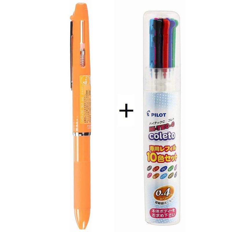 Pilot Multi-Pen Body Hi-Tec-C Coleto 500 Orange Body (LHKC-50C-O)+ 0.4mm Refill 10 Color Set (LHKRF-1SC4-10C)