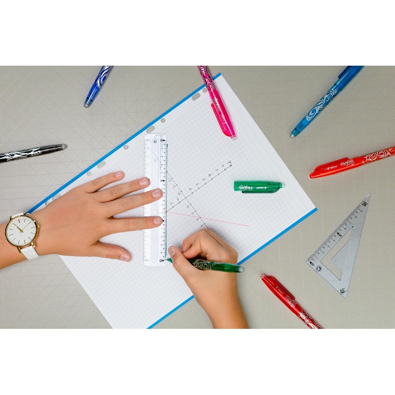 Die innovative, thermosensitive Tinte verschwindet beim Radieren (ab ca. 60°C Reibungswärme) und die gummierte Griffzone sorgt für eine komfortable Nutzung in jedem Anwendungsbereich.
