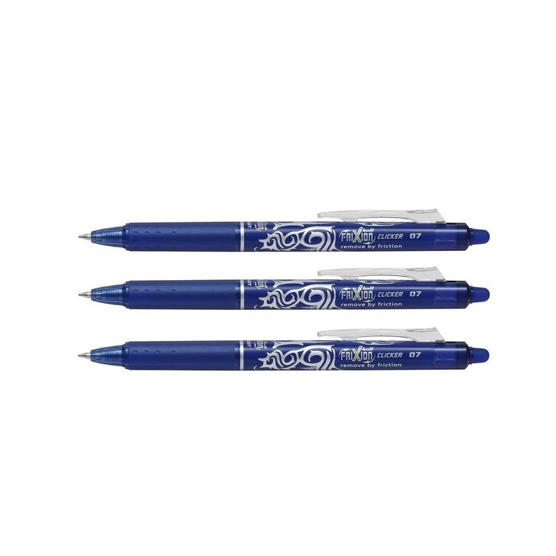 Pilot Pilot Frixion Clicker, Gelstift, löschbare Tinte, 0,7 mm Spitze, Tattoo-Design, blaue Tinte (3 Stück)