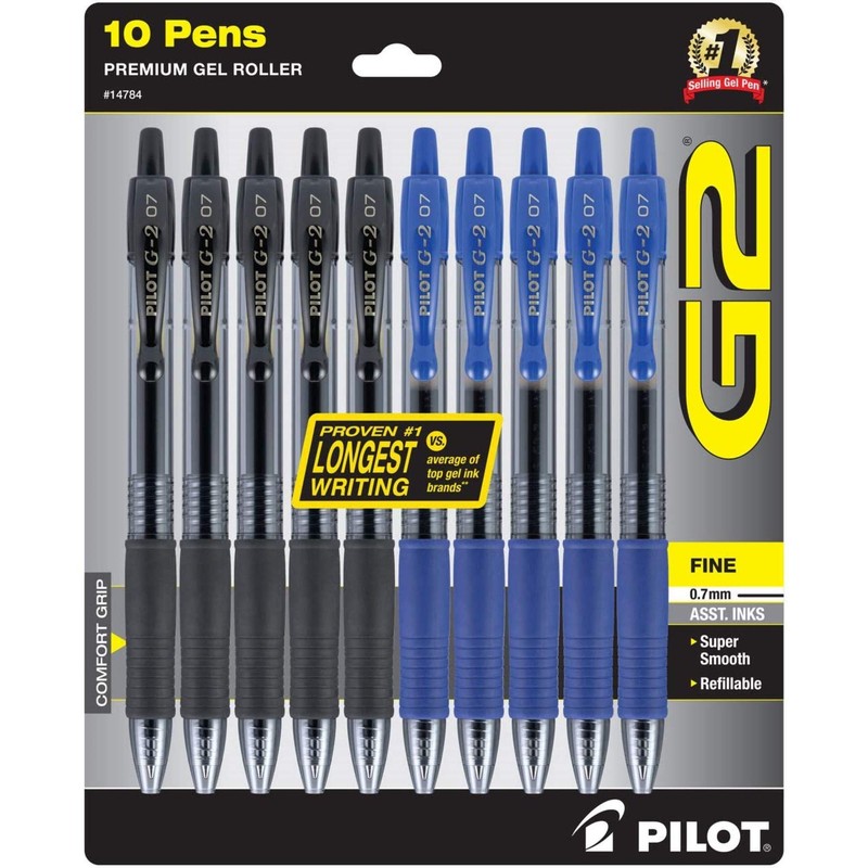 - PILOT G2 PENS 10 PACK OF 5 BLACK & 5 BLUE INK PENS - The 0.7 pens fine point smooth writing pens features a comfortable rubber grip, making it great for journaling & professional Office use.