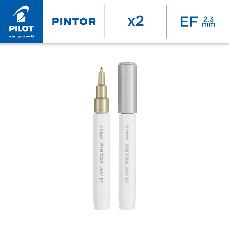 PILOT Pintor 3131910536840 Extra Fine Line Bullet Point Marker 2.3mm Tip Gold and Silver (Pack of 2)