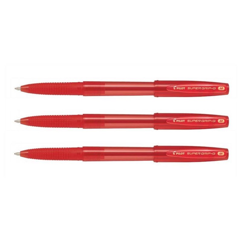 PILOT Set of 3 Super Grip Ballpoint Pens with Cap Medium Red