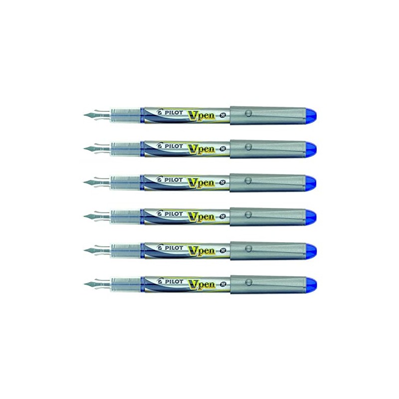 PILOT V-Pen Disposable Fountain Pens Silver Medium Nib Blue (Pack of 6)