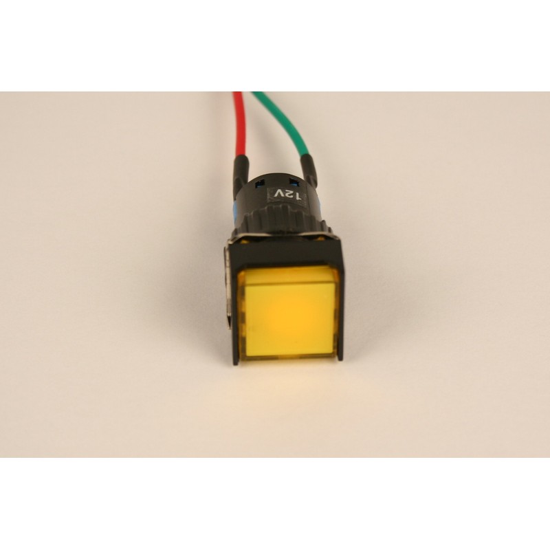 PilotLights 12 Volt DC Pilot Light, 17mm Square Panel Indicator Light - Yellow LED, 12VDC