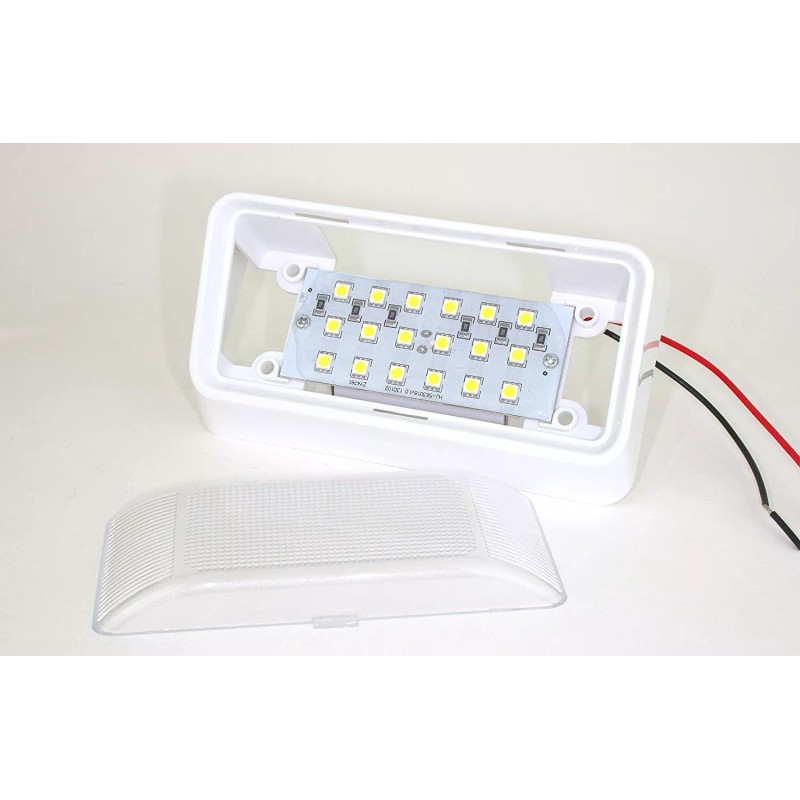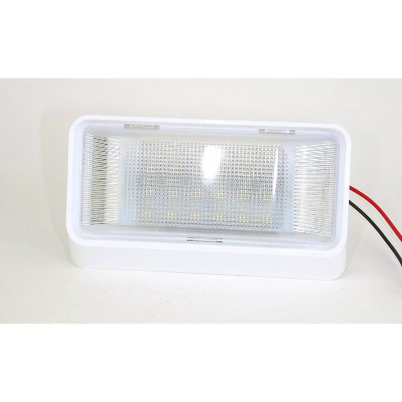 This compact (6" x 3.44" x 2") ABS plastic porch light is ideal for use on RV's, Trailers, Sheds, Marine vehicles and Utility spaces. 12VDC, low current consumption (under 0.15A). Natural White LED Lighting (4500K). Easy installation - the mounting hole pattern matches most existing RV's, or simply remove the lens and install using the included hardware (4 screws). Provides a broad natural white LED light.