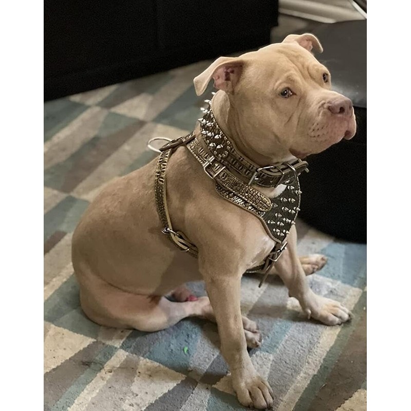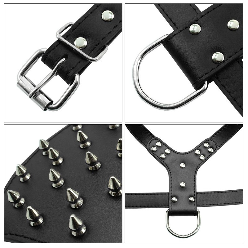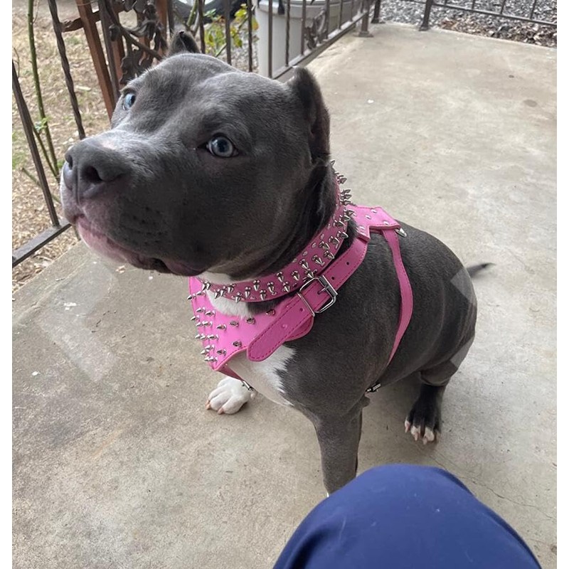 Pimaodog Breed Leather Spiked Studded Dog Harness,Collar & Leashes 3Pcs Set for Medium & Large Dog Pit Bull,Mastiff, Boxer, Bull Terrier (Studs White, L)