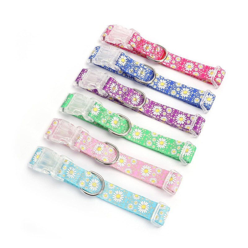Bring a touch of spring to your furry friend with this charming daisy-patterned dog collar.