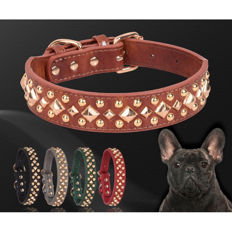Pimaodog Spiked Studded Dog Collar, Adjustable Soft Leather Puppy Collar for Small Medium Dogs Bulldog Pitbull Mastiff Poodle Boxer (XS, Brown3)