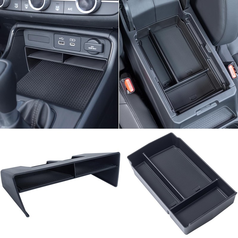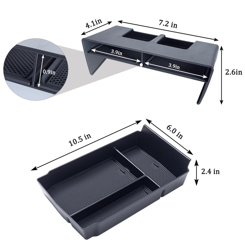 • Armrest Tray: The center console organizer is compatible with the original vehicle tray. Adds an extra layer of storage, you can hold some smaller items on top, and there is also space underneath it to put larger things that you don’t need very often.