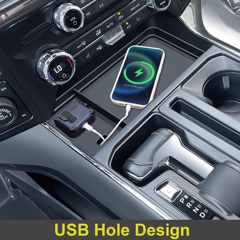 - Patent Design: Designed for 2021-2025 Ford F150 & 2022-2024 F150 Lightning XLT (installs into the shifter's front pocket). Does NOT fit models with a wireless charging console lid.