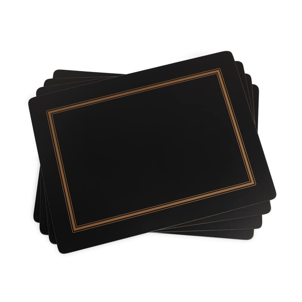 Pimpernel Classic Black Collection Placemats | Set of 4 | Heat Resistant Mats | Cork-Backed Board | Hard Placemat Set for Dining Table | Measures 15.7” x 11.7”