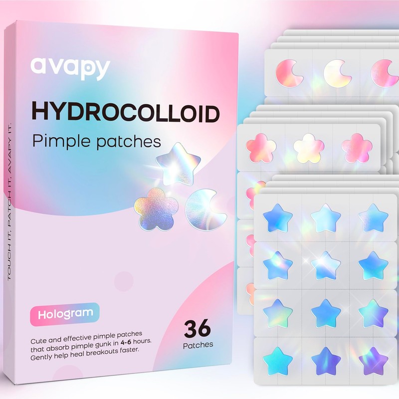Pimple Patches Blue Pink Star Moon Flower 12MM 36PCS Hologram