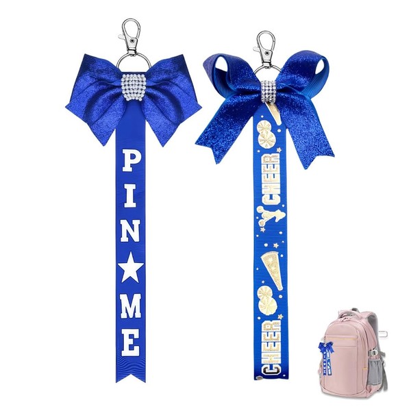 Pin Me Ribbon for Cheer Bag Navy Blue Cheer Bow Keychains for Backpacks Cheerleading Stuff for Toddlers Cheerleader Gifts for Kids Daughter Birthday Graduation Gifts for Girls Cheer Pin Strap 2 Pcs