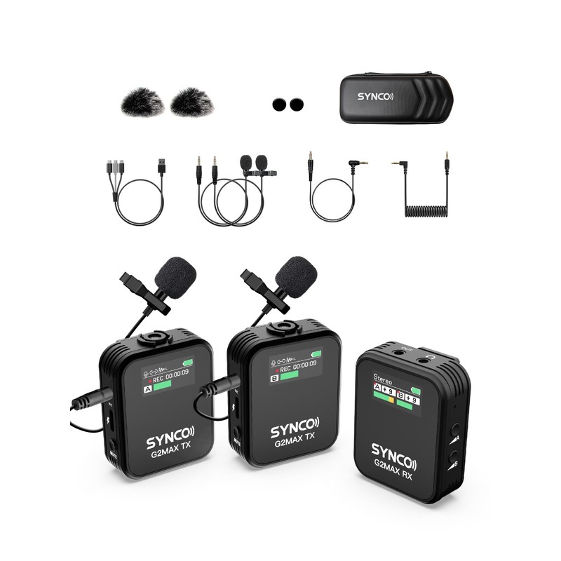 - (One-touch Recording) The SYNCO G2 (A2) MAX wireless microphone has built-in memory in two transmitters, so even if the recording quality is decreased due to radio interference or other troubles, it also has a function of recording itself, so it is very convenient when shooting video or interviewing
