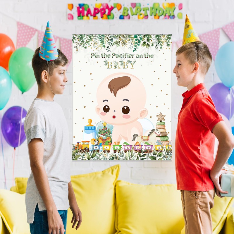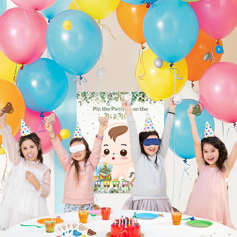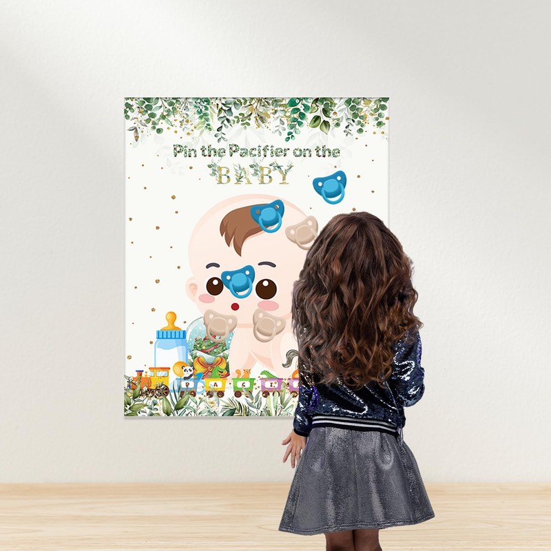 - Fun and Interactive Baby Shower Game: Add excitement to your baby shower party with our Pin The Pacifier On The Baby Game. This classic game will keep your guests entertained and create lasting memories