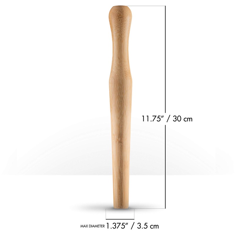 - EASY TO USE – The extended, flat-surface muddler is perfect for muddling herbs and fruits. The maximum width of the muddler is 1.375” (3.5cm) with a tapered end to fit in nearly all cocktail glassware and mugs. The length of the flat-surface muddler is 11.75” (30cm.)