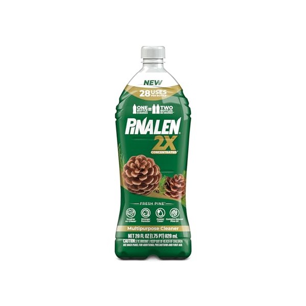 Transform your home with the scent of freshness and the shine of clean floors and surfaces. PINALEN? 2X Multipurpose Cleaner Original Pine Scent is the powerhouse that gets the job done efficiently with naturally derived, real pine oil that leaves your home smelling truly pine fresh. This isn't your average cleaner2X means more uses per bottle. One ounce of 2X delivers the same cleaning punch as two ounces of the regular PINALEN? Fresh Pine? formula. You get twice as many uses from the same-sized bottle. Say goodbye to tough stains, grease, and unwanted odors with our innovative technologies. PINALEN? proudly uses 100% recycled plastic bottles for our biodegradable formulas that are sourced from naturally derived pine oil. Cleaning with 2X PINALEN? lets you use less liquid. That means less water, plastic, packaging, and transportation waste for the planet. Great Scents. Good Sense. Less Cents.