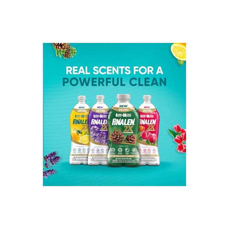 Transform your home with the scent of freshness and the shine of clean floors and surfaces. PINALEN® 2X Multipurpose Cleaner Original Pine Scent is the powerhouse that gets the job done efficiently with naturally derived, real pine oil that leaves your home smelling truly pine fresh. This isn't your average cleaner—2X means more uses per bottle. One ounce of 2X delivers the same cleaning punch as two ounces of the regular PINALEN® Fresh Pine® formula. You get twice as many uses from the same-sized bottle. Say goodbye to tough stains, grease, and unwanted odors with our innovative technologies. PINALEN® proudly uses 100% recycled plastic bottles for our biodegradable formulas that are sourced from naturally derived pine oil. Cleaning with 2X PINALEN® lets you use less liquid. That means less water, plastic, packaging, and transportation waste for the planet. Great Scents. Good Sense. Less Cents.