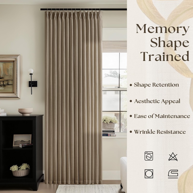 - Memory Shape Trained Curtains: Seeluck pinch pleated curtains get memory shape training at 248°F, so the pleats keep their graceful folds and the curtains stay in their original shape. This process creates a refined yet easygoing style; the soft, textured folds bring an effortlessly neat and custom-like appearance