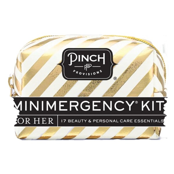 Pinch Provisions Beauty Minimergency Kit for Her Gift Gold/White Candy Stripes