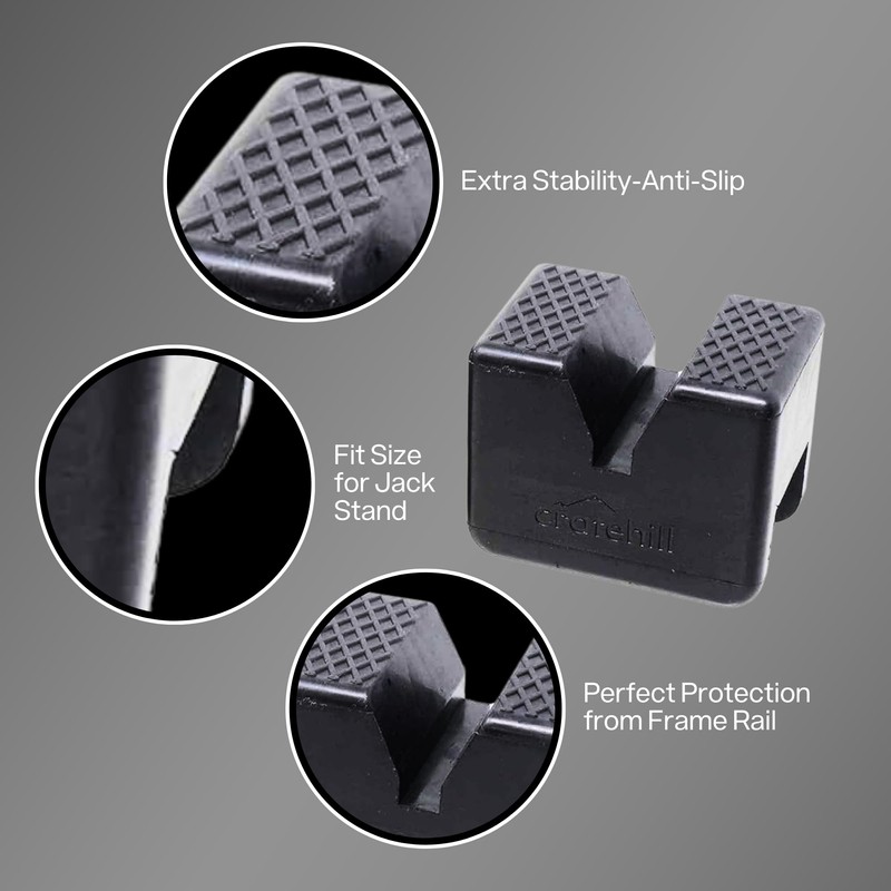 - 🚨 Secure and Stable Support: Cratehill's jack stand rubber pads are engineered for maximum stability and protection. Ideal for up to 6-ton jack stands, they fit perfectly on pinch welds, offering a secure grip. These universal jack stand adapter pads are compatible with a wide range of jacks, including floor jacks and car lift jacks, ensuring your vehicle maintenance is safe and reliable.