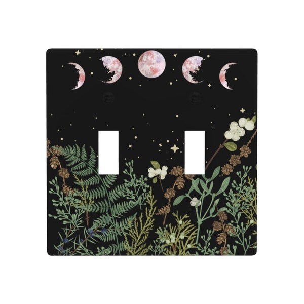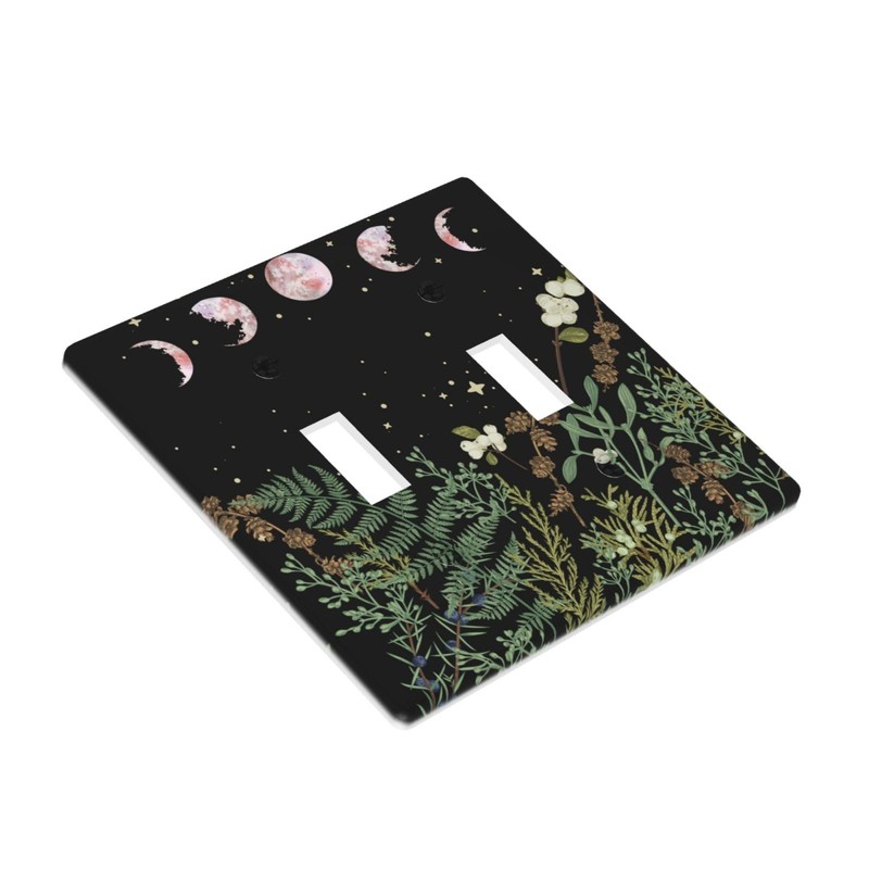 Pine Forest Green Witch Moon Phase Toggle Light Switch Wall Plate, Double Swi...