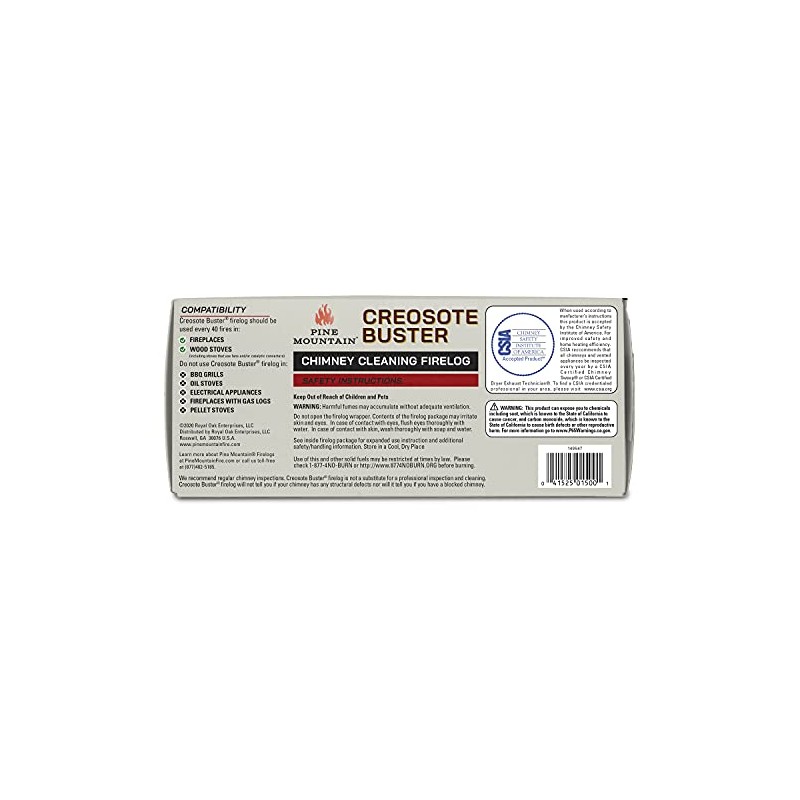 - Fireplace Safety: The Creosote Buster Fire log contains a specially formulated powder that when heated converts to a super penetrating gas to attack and breaks down creosote compounds in your chimney to remove dangerous creosote and help prevent chimney fires
