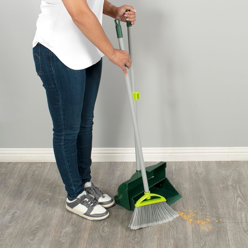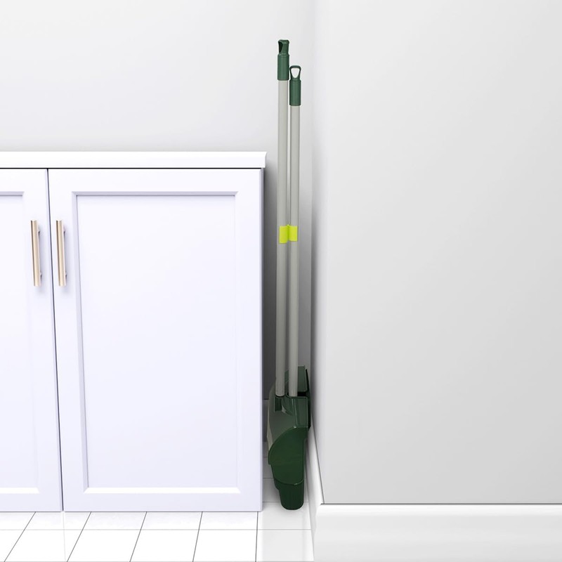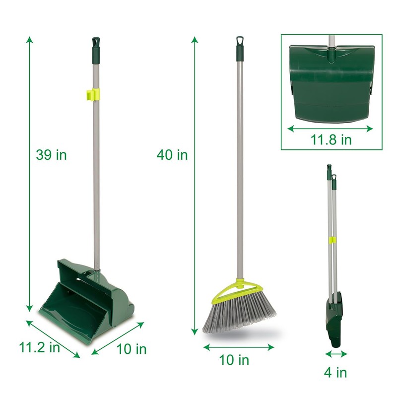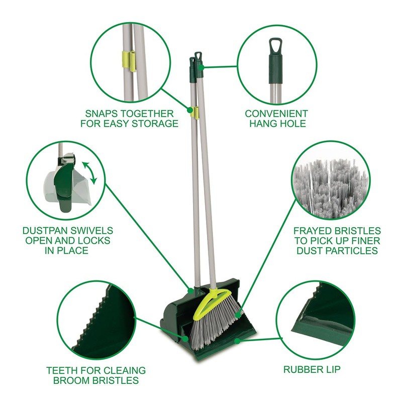 - COMPACT STAND UP STORAGE: The clip-on feature makes the broom and upright dustpan a perfect space saver! Compact storage keeps your home or workspace clean and tidy.