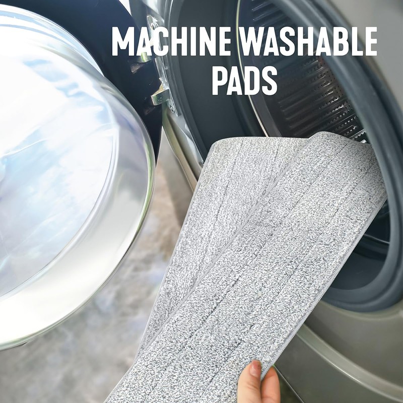 - MACHINE WASHABLE MOP PADS - For quick cleanup, pop in the washer to make your flat mop head look like new again. After washing, run through the dryer on low; the mop refill is dryer safe to make your mop head replacement process seamless.