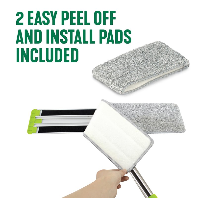 - VELCRO FLAT MOP FOR EASY REPLACEMENT - Hardwood floor mop comes with two reusable mop pads. Install cleaning pad in seconds with the easy peel Velcro system, while the ultra absorbent microfiber quickly mops up those unplanned spills.