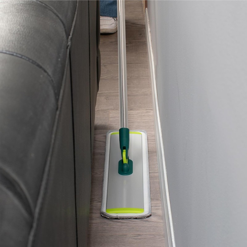 - EXTENDABLE SWIVEL MOP - Say goodbye to straining your back! Telescoping mop extends to 54.7 inches to sweep under furniture. Mop head swivels 180 degrees to squeeze into hard-to-reach spots, while the lightweight design is great for dusting walls. Retracts to 35 inches for compact storage.
