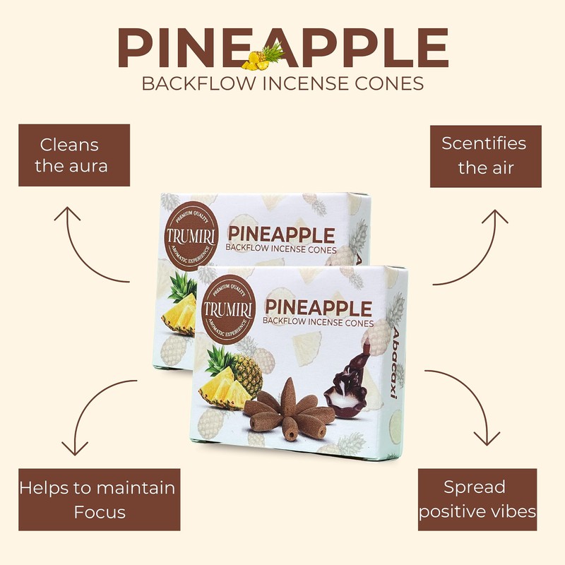 - Mesmerizing Backflow Effect: Experience the captivating beauty of our Pineapple backflow incense cones as they release fragrant smoke that gracefully flows downwards, creating a mesmerizing and enchanting display.