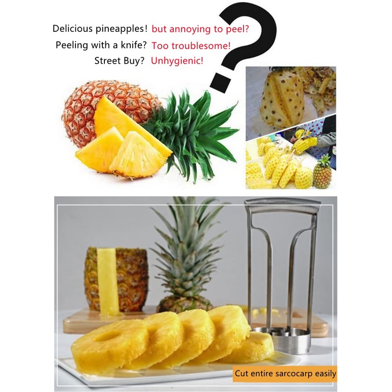 - Pineapple cutter, food grade pineapple cutting tool, made of corrosion-resistant and durable 304 stainless steel, sharp blades can easily cut and remove pineapple seeds