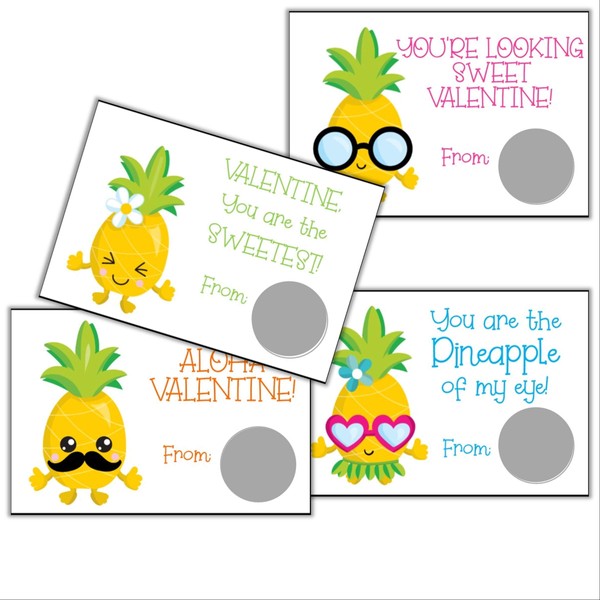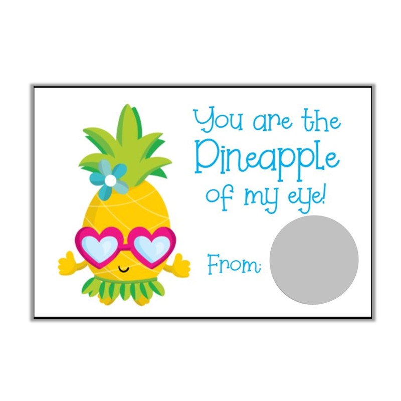 Pineapple Valentine's Day Scratch Off Card for Kids, DIY Valentines, Class Va...
