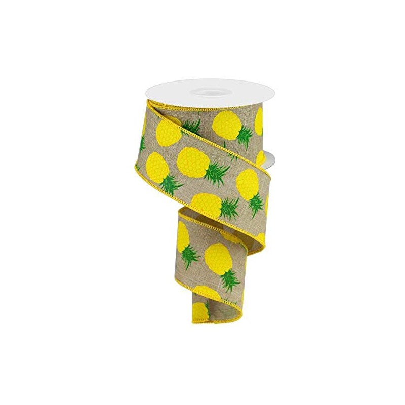 Pineapples Wired Edge Ribbon, 10 Yards (Cream, 1.5 Inches)