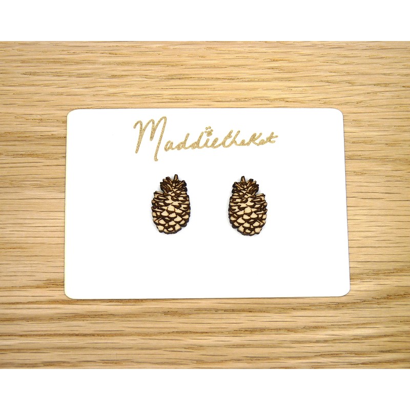 Pinecone Wood Stud Earrings | Nature Jewelry