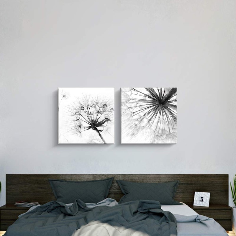 Pinetree Art 2 Panel Black And White Canvas Wall Art Dandelion Nordic Canvas Prints Painting Wall Decor for Living Room Wooden Framed Home Decorations - 12"x12" (Dandelion, 12 x 12 2pcs)