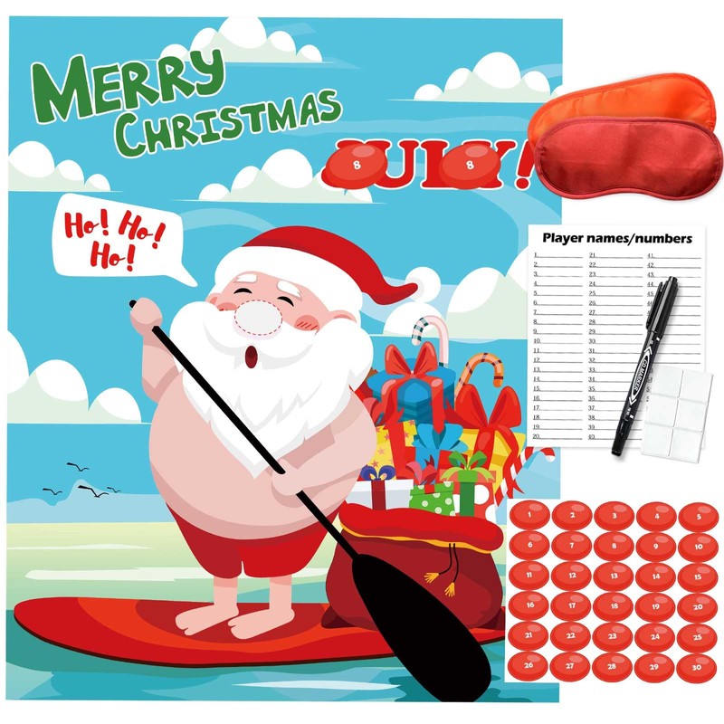 - PIN THE NOSE ON THE SANTA CLAUS: Stickers have numbers that can help you track who the team members are. names can be written on the back of the instructions to make it easy to find team members, and it's a complete set of christmas day july party games that can provide a lot of fun for a party.